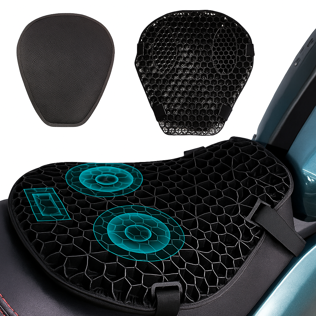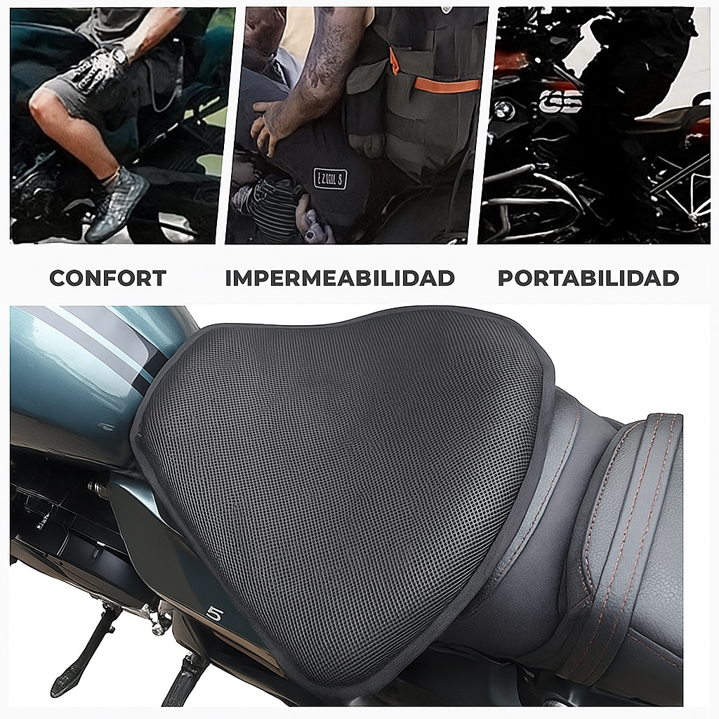 | 🛋️ Descripción | Cojín de gel multifuncional 👉 ideal para moto 🏍️, oficina 💻, carro 🚗 o cualquier asiento. ✨ Brinda comodidad, soporte y reduce el dolor en viajes largos. |